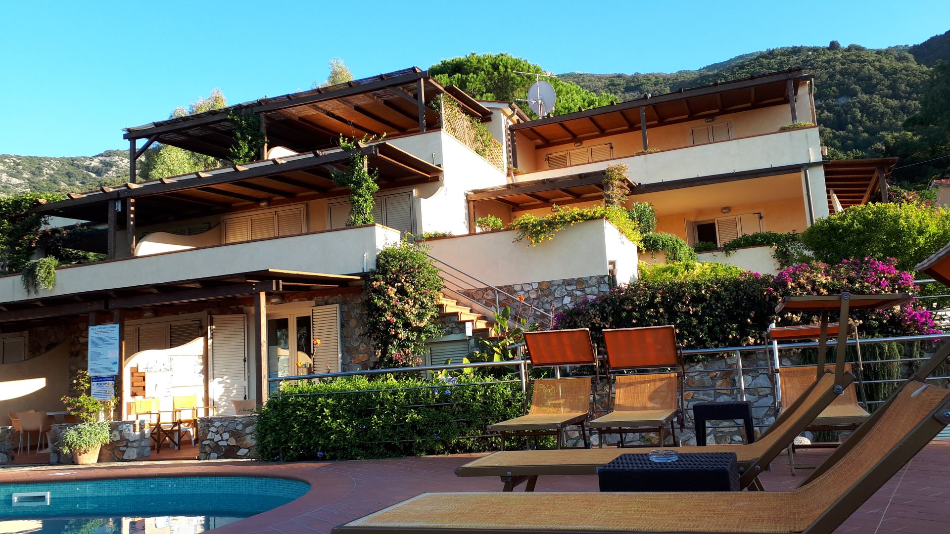 Elegante complesso di nuovissima costruzione costituito da otto appartamenti distribuiti su più piani, immersi nel verde e affacciati sull'incantevole golfo di Sant'Andrea. Tutti gli appartamenti sono dotati di uno spazio esterno attrezzato vista mare e alcuni sono prospicienti la piscina che è circondata da un ampio solarium in autentico cotto toscano attrezzato con sdraio e o... Vedi di più