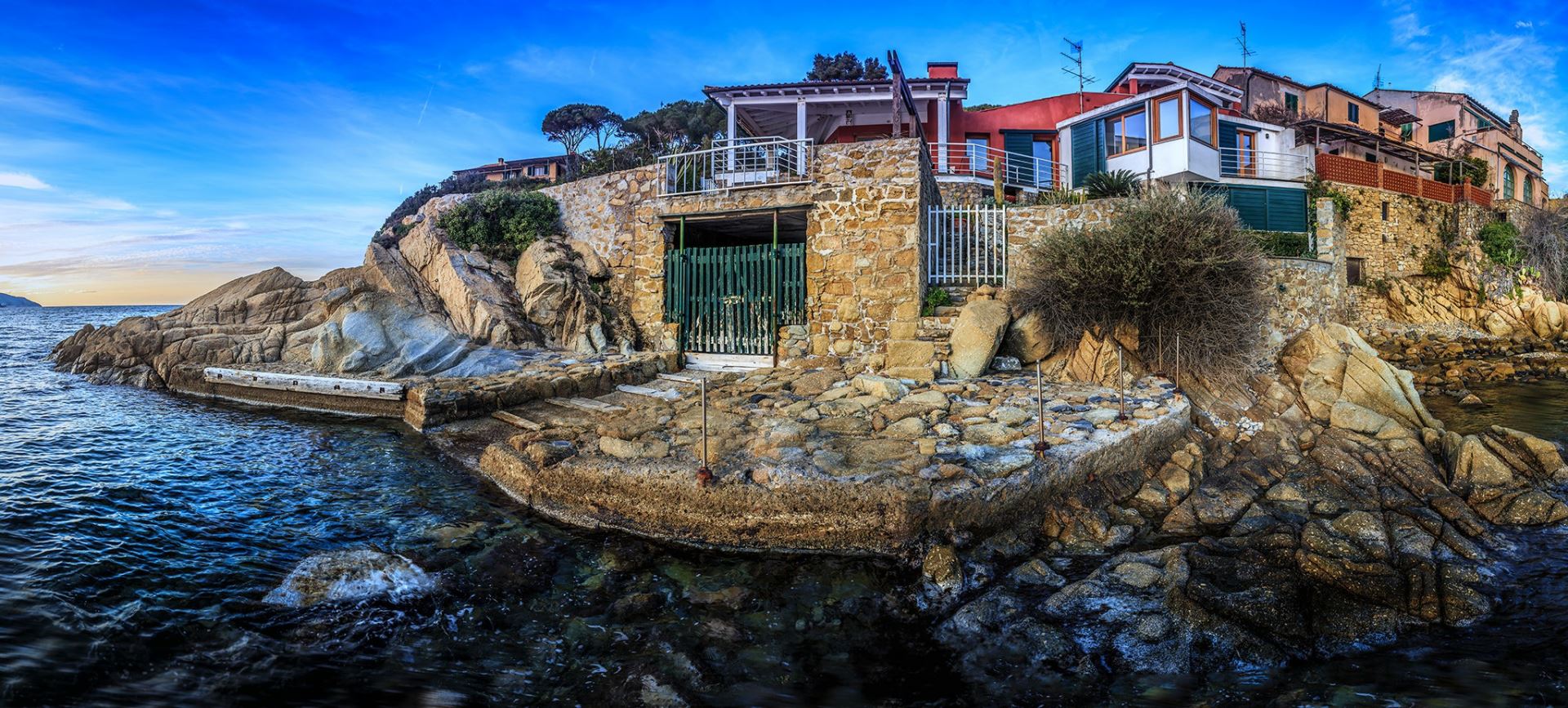 Villa The Boat si trova direttamente sul mare nella meravigliosa baia di Scaglieri e dalle sue terrazze si gode di una vista panoramica mozzafiato sul Golfo della Biodola. Il mare e gli splendidi tramonti si ammirano anche dall'interno della casa grazie alle sue larghe vetrate che si affacciano sul golfo. Dalla Villa, recentemente rinnovata, si può raggiu... Vedi di più